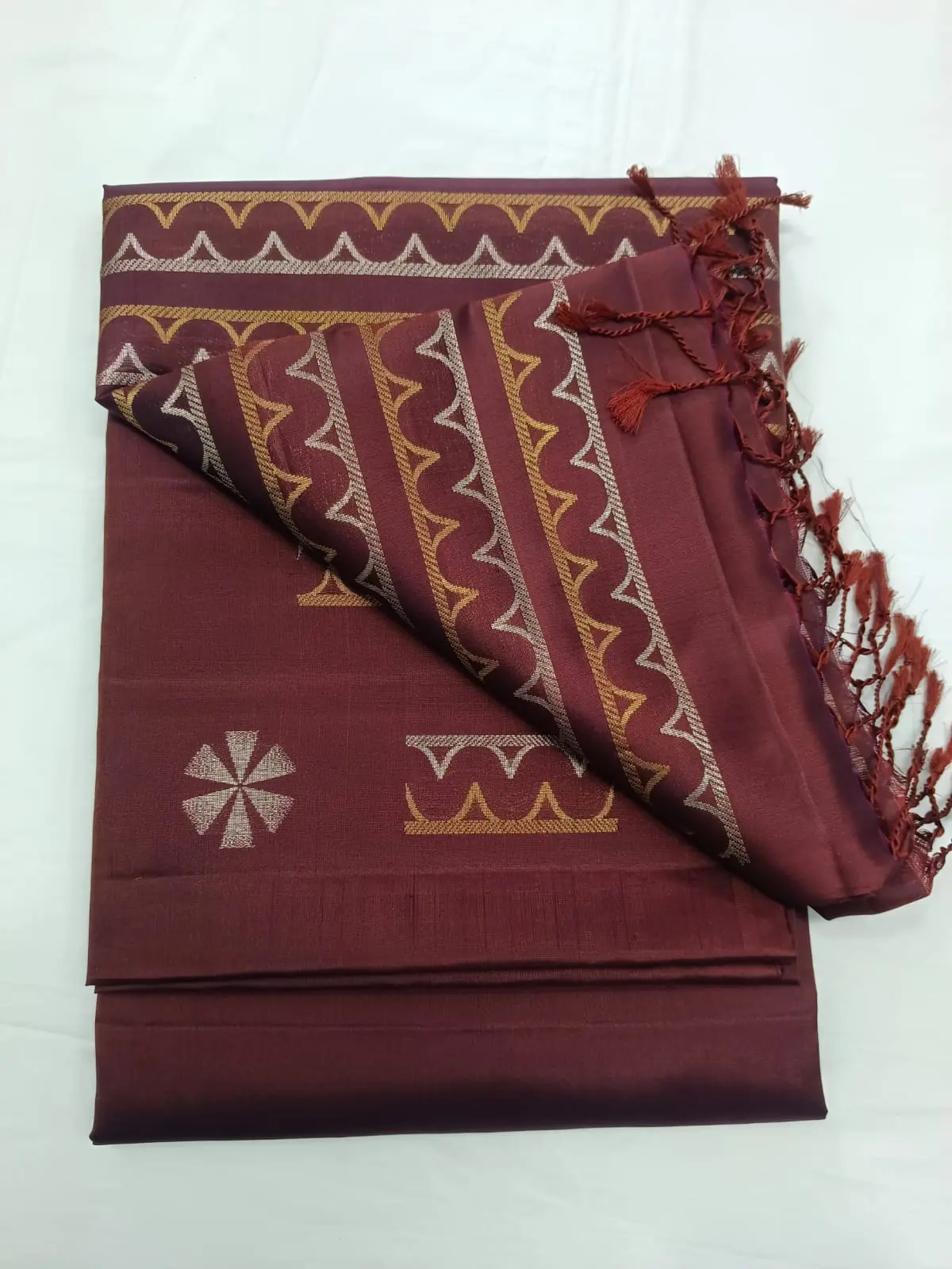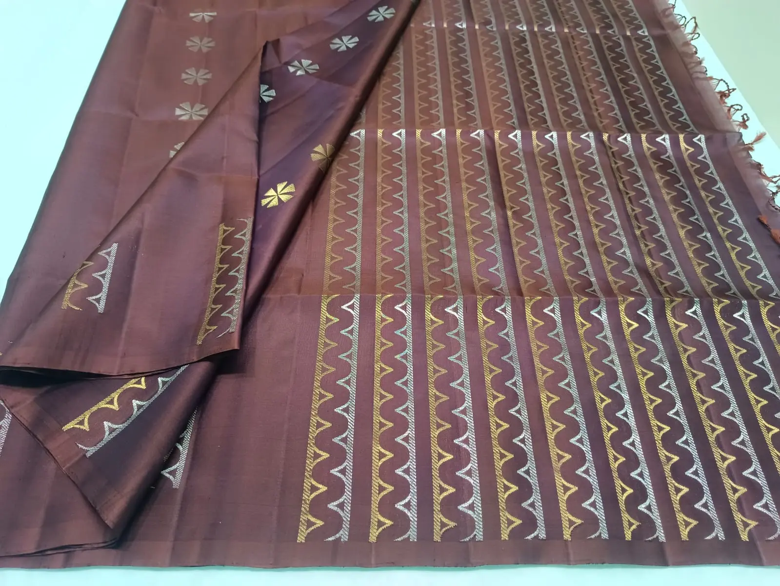 Embrace timeless elegance with our Brown Weave Pattu Saree, a masterpiece of traditional handloom craftsmanship. Woven with rich silk threads, this saree exudes warmth and sophistication through its deep brown hue — a color that symbolizes grace and grounded beauty.