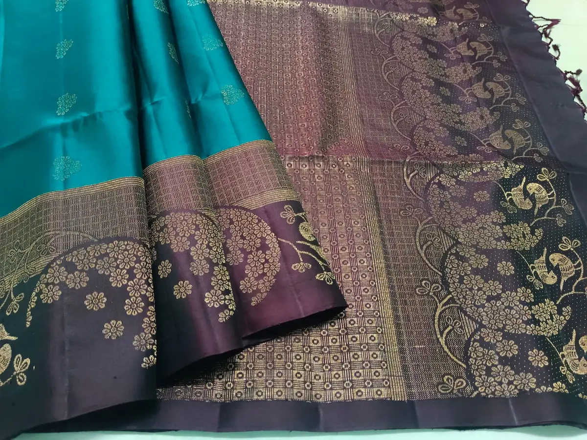 ₹9,000.00Embrace timeless elegance with our Brown Weave Pattu Saree, a masterpiece of traditional handloom craftsmanship. Woven with rich silk threads, this saree exudes warmth and sophistication through its deep brown hue — a color that symbolizes grace and grounded beauty.